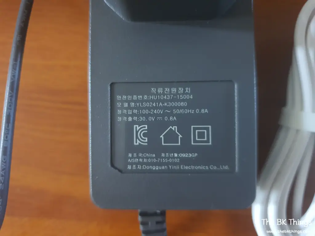I also carefully checked the specifications to see if they were different, but they were identical: 30.0V 0.8A. I was surprised to see that the manufacturer was also the same: Dongguan Yimli Electronics Co., LTD. It’s labeled as a “compatible” charger, but it seems to be an authentic, genuine product.